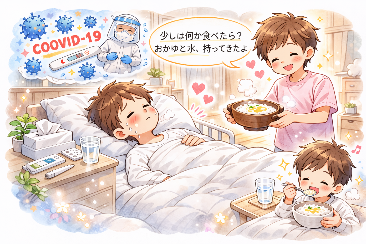 私は嬉しさと同時に「すぐ部屋を出て」とお願いしました。感染させたくないという思いからでしたが、それでもその気持ちはしっかりと伝わってきました。