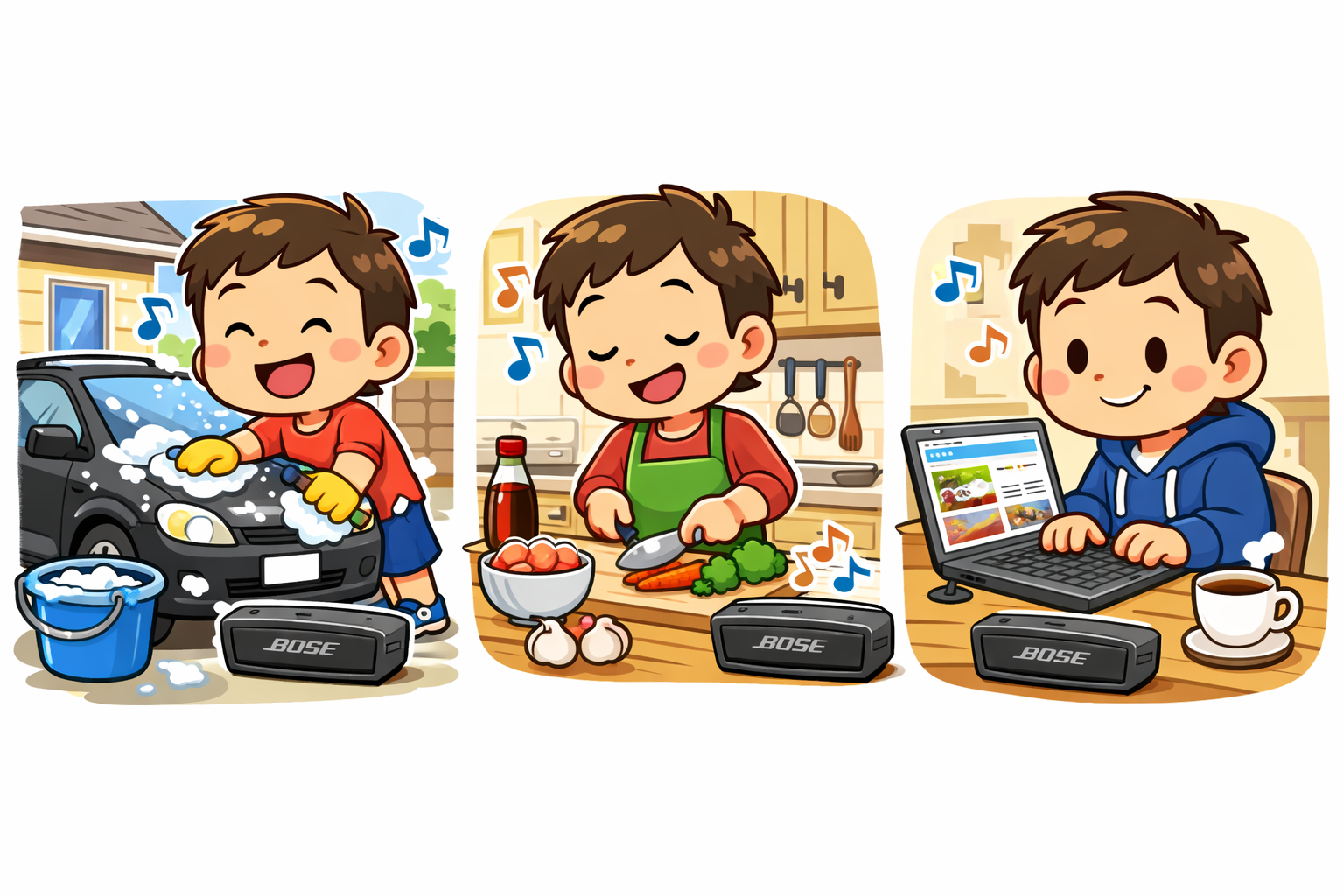 それから時が流れ、平成の終わりごろ。ふと立ち寄った家電量販店で目に留まったのが、驚くほど小さなBOSEのminiスピーカー。価格は約3万円。Bluetooth接続でそこそこの音量が出るらしい。「こんなに小さいけどBOSEだし…」と興味を抑えきれず視聴をお願いすると、その瞬間、想像を遥かに超える音質に心を奪われました。以前使っていた他社製ミニスピーカーとは別次元。迷うことなく購入しました。